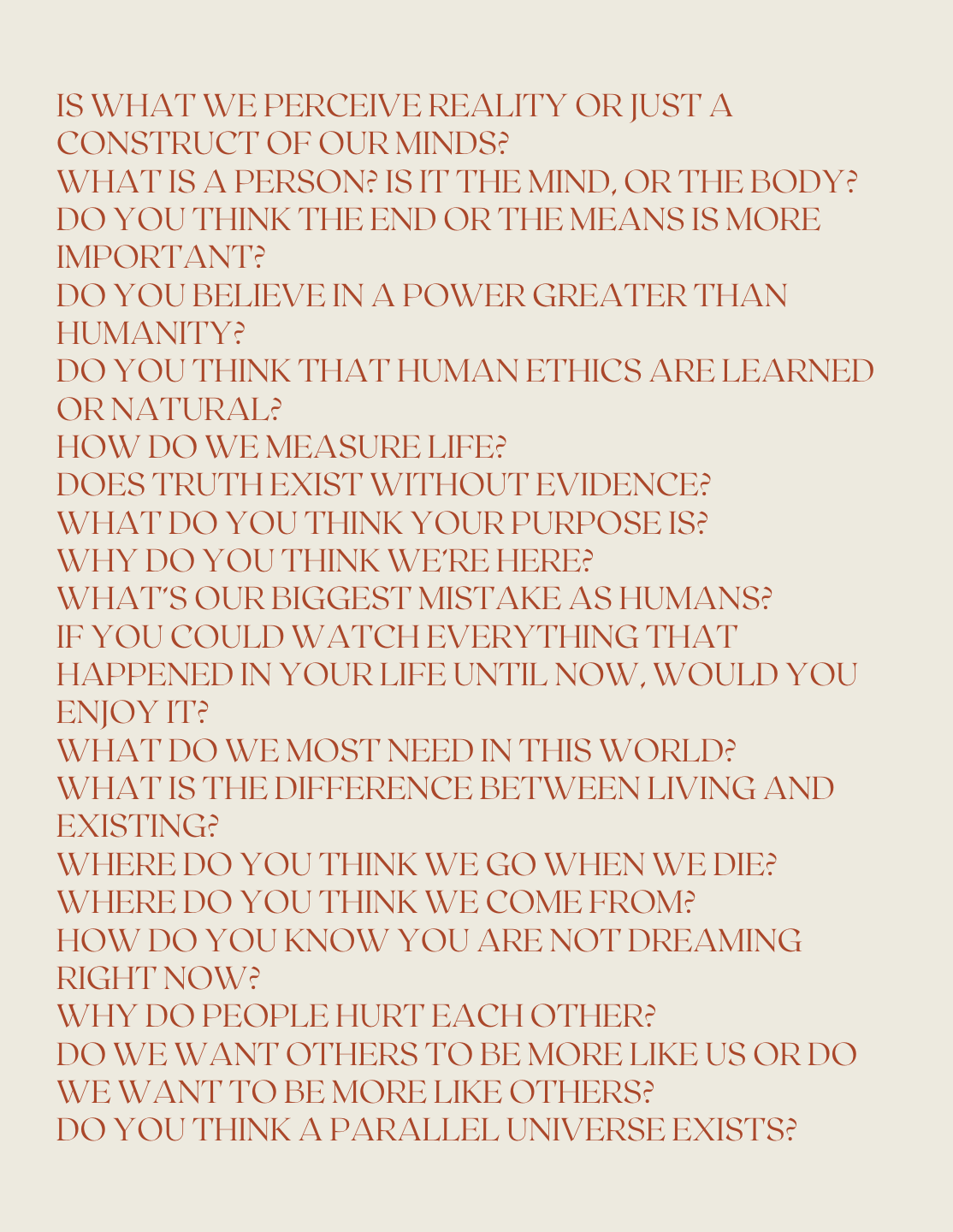 Talking to Ethan is like no one I’ve ever met before. There is no dance of small talk; instead we jump into the deep end without looking back — I know his thoughts on death, god, and consciousness before I know if he has any siblings.